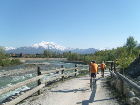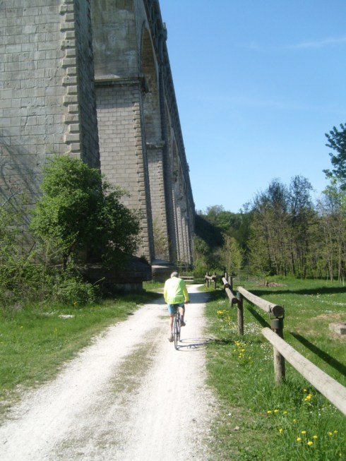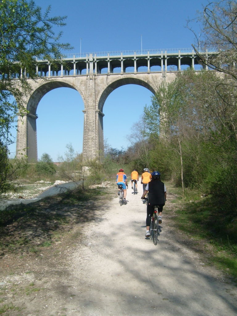 Da lì si è ritornati a percorrere stradine lungo il fiume, fiancheggiando per un tratto il muovo viadotto autostradale (per inciso: c’era più traffico sulla ciclabile che sull’autostrada…).