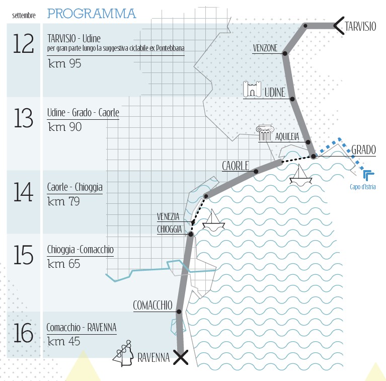 A tal fine numerosi sono stati i contatti e gli incontri con Sindaci ed amministratori provinciali e regionali delle regioni attraversate (Udine, Aquileia, Grado, Ravenna) per verificare quanto fatto e … spingere per il futuro!