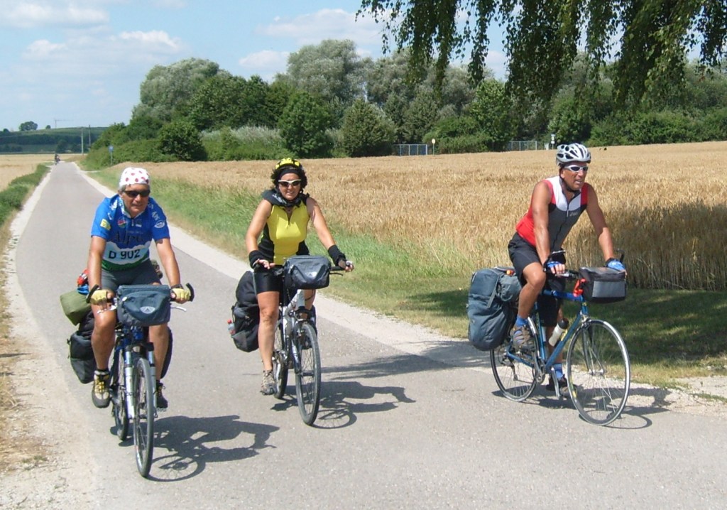 Gigio Gallo, socio fondatore di Bicingiro, è partito il 27 giugno alla volta del Canada, dove compirà un lungo itinerario di circa 4.000 km che si snoderà attraverso Toronto, le cascate del Niagara, il lago Ontario, una puntata negli U.S.A., Ottawa, Montreal, Quebec, Campbelton, isola di Prince Edward e infine Halifax. Tra un paio di settimane lo raggiungeranno anche Maria Gervasini e Valter Vernetti (il trio è fotografato qui sotto durante il viaggio di tre anni fa da Cuneo a Vienna, sulla ciclabile del Danubio). Buon viaggio e grandi avventure!!!