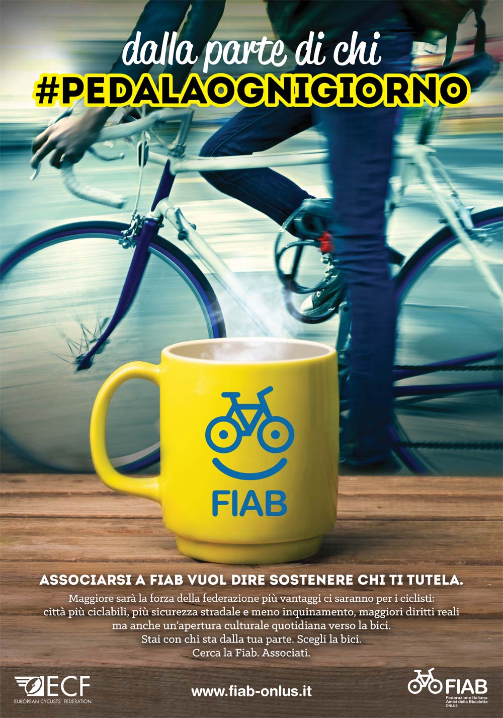 Associarsi alla Fiab vuol dire sostenere chi ci tutela. Più forte sarà federazione, più vantaggi ci saranno per i ciclisti: città più ciclabili, più sicurezza stradale e meno inquinamento, maggiori diritti reali ma anche un’apertura culturale quotidiana verso la bici.