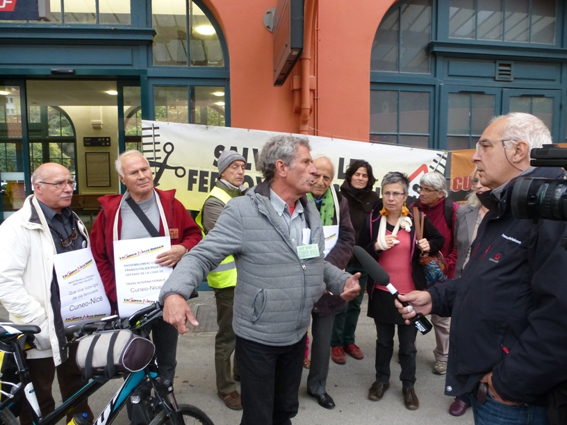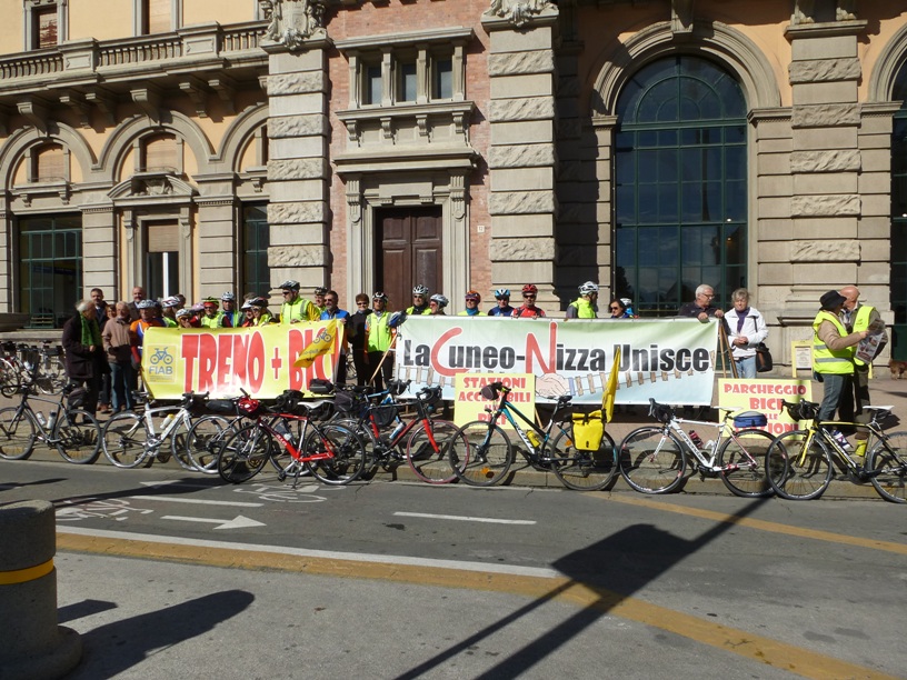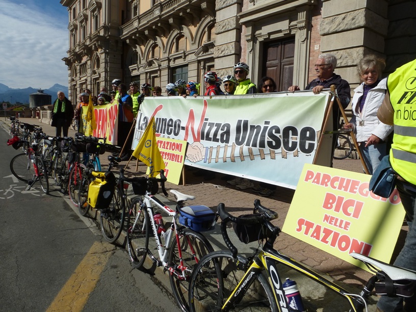 La manifestazione in sostegno della ferrovia Cuneo Nizza organizzata dal Comitato ferrovie locali e da Fiab Cuneo Bicingiro ha avuto un buon successo. A mezzogiorno del 12 ottobre un folto gruppo di ciclisti si è ritrovato davanti alla stazione di Cuneo, dove si sono evidenziate le problematiche relative alla linea storica e i possibili interventi immediati. Le difficoltà sono molte, ma importante è la volontà politica italiana e francese, attualmente molto debole, di mantenere questa linea.